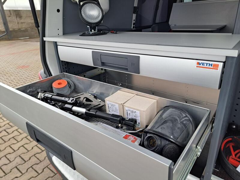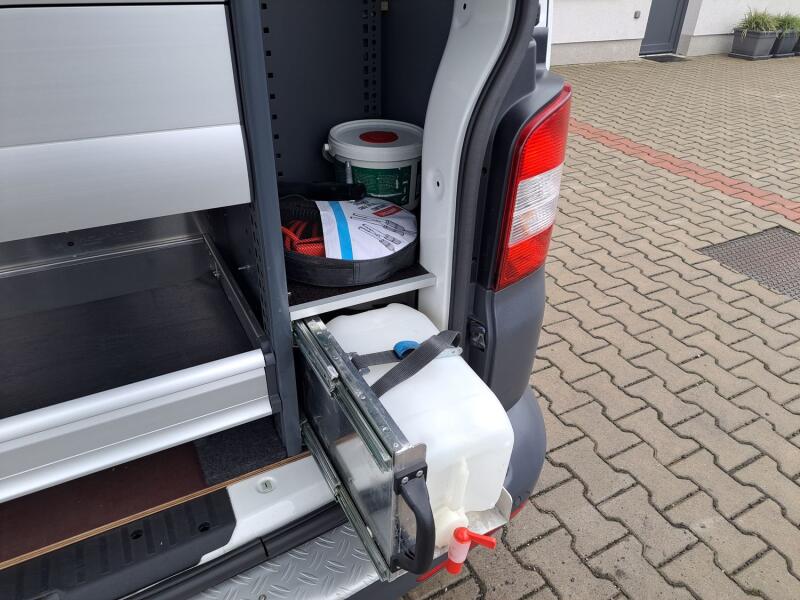 Krásné auto s kompletně vybavenou dílnou – topení Webasto, inverter (měnič) na 230V s rozvodem po voze, tiskárna, pracovní stůl s rozvody USB a zásuvkami, trezor, přídavná světla, dílenský nábytek zn.VETH, zásobník na vodu, … Zánovní pneu, kompletní servisní historie, nový alternátor, nová baterie. Odnímatelné tažné na 2.5 tuny.