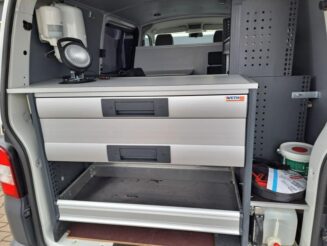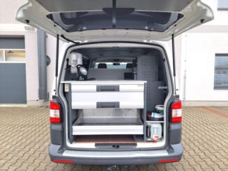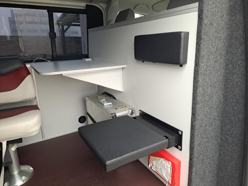 Krásné auto s kompletně vybavenou dílnou – topení Webasto, inverter (měnič) na 230V s rozvodem po voze, tiskárna, pracovní stůl s rozvody USB a zásuvkami, trezor, přídavná světla, dílenský nábytek zn.VETH, zásobník na vodu, … Zánovní pneu, kompletní servisní historie, nový alternátor, nová baterie. Odnímatelné tažné na 2.5 tuny.